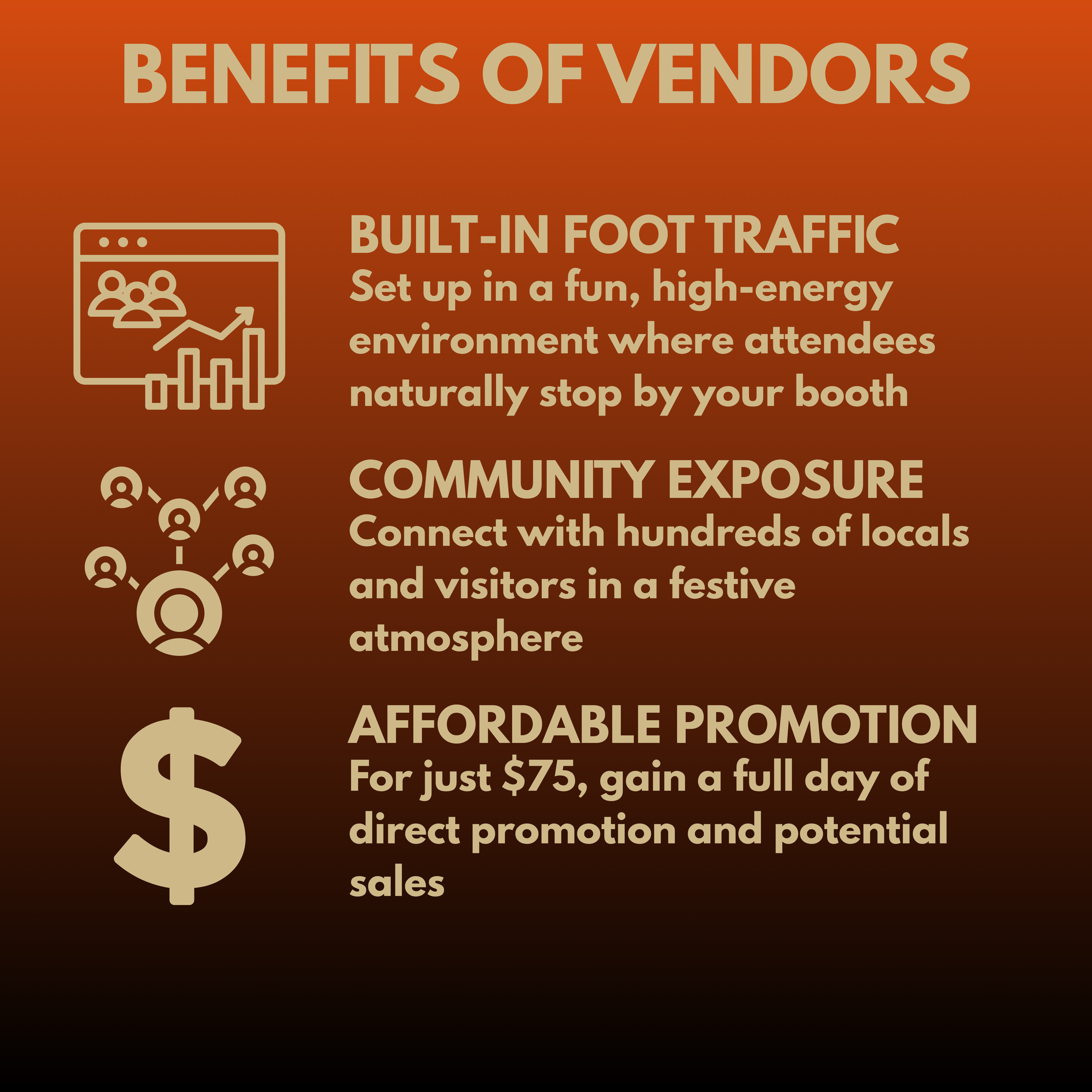 Built-in foot traffic, community exposure, and affordable promotion! Spots are limited - sign up now!